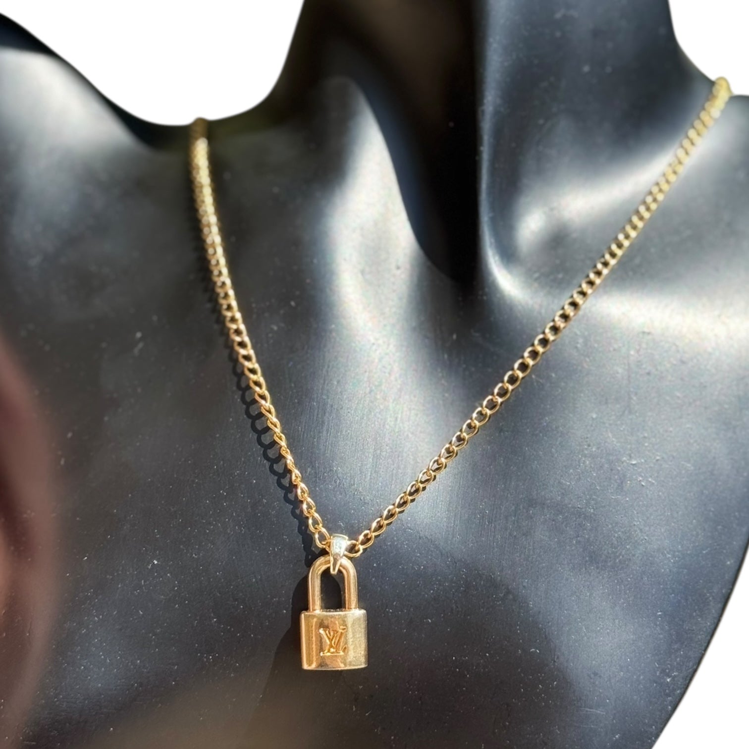LOUIS VUITTON Gold LV Logo Lock Charm Necklace