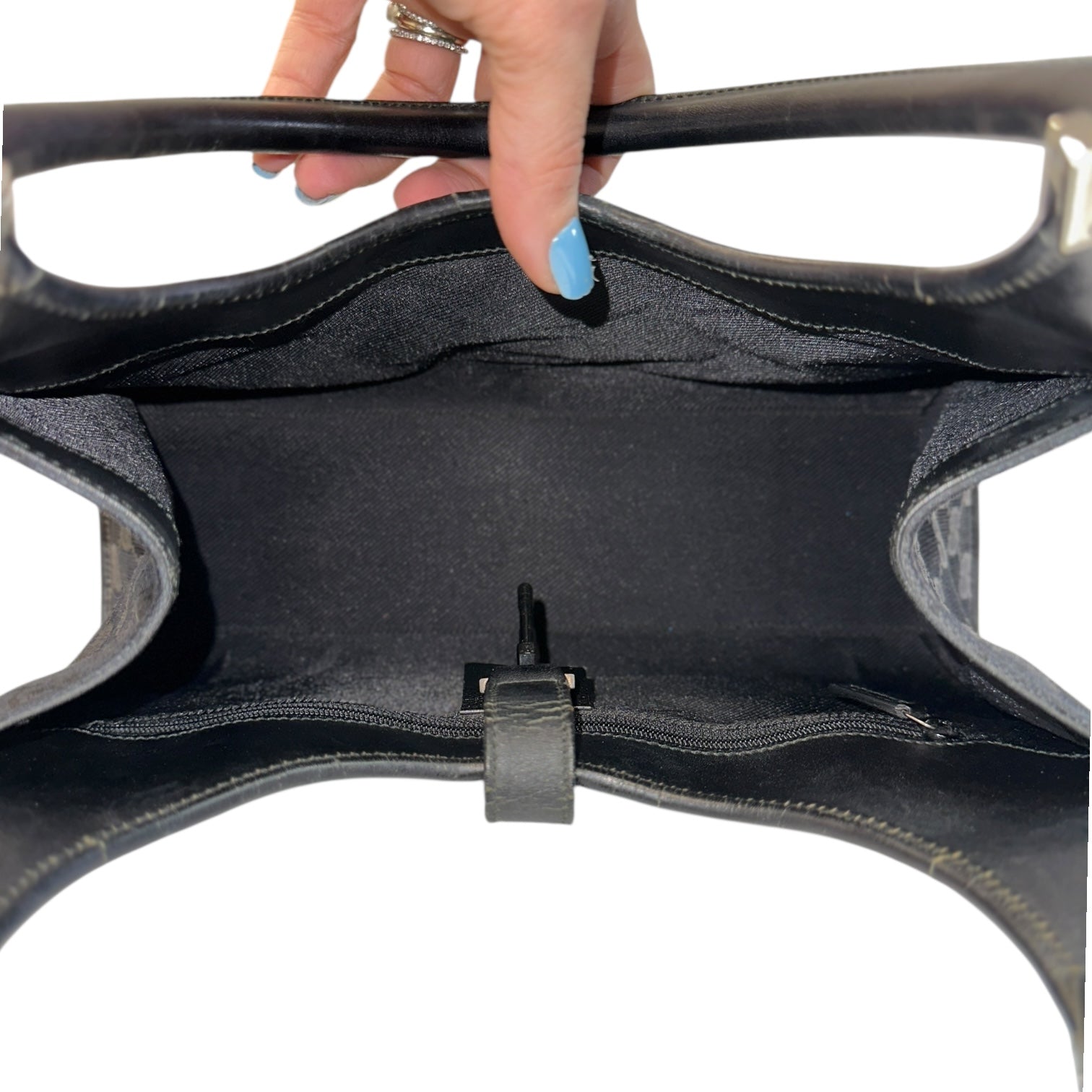 • Black Leather Details and Dual Rolled Handles, Strap Drop 8 inches