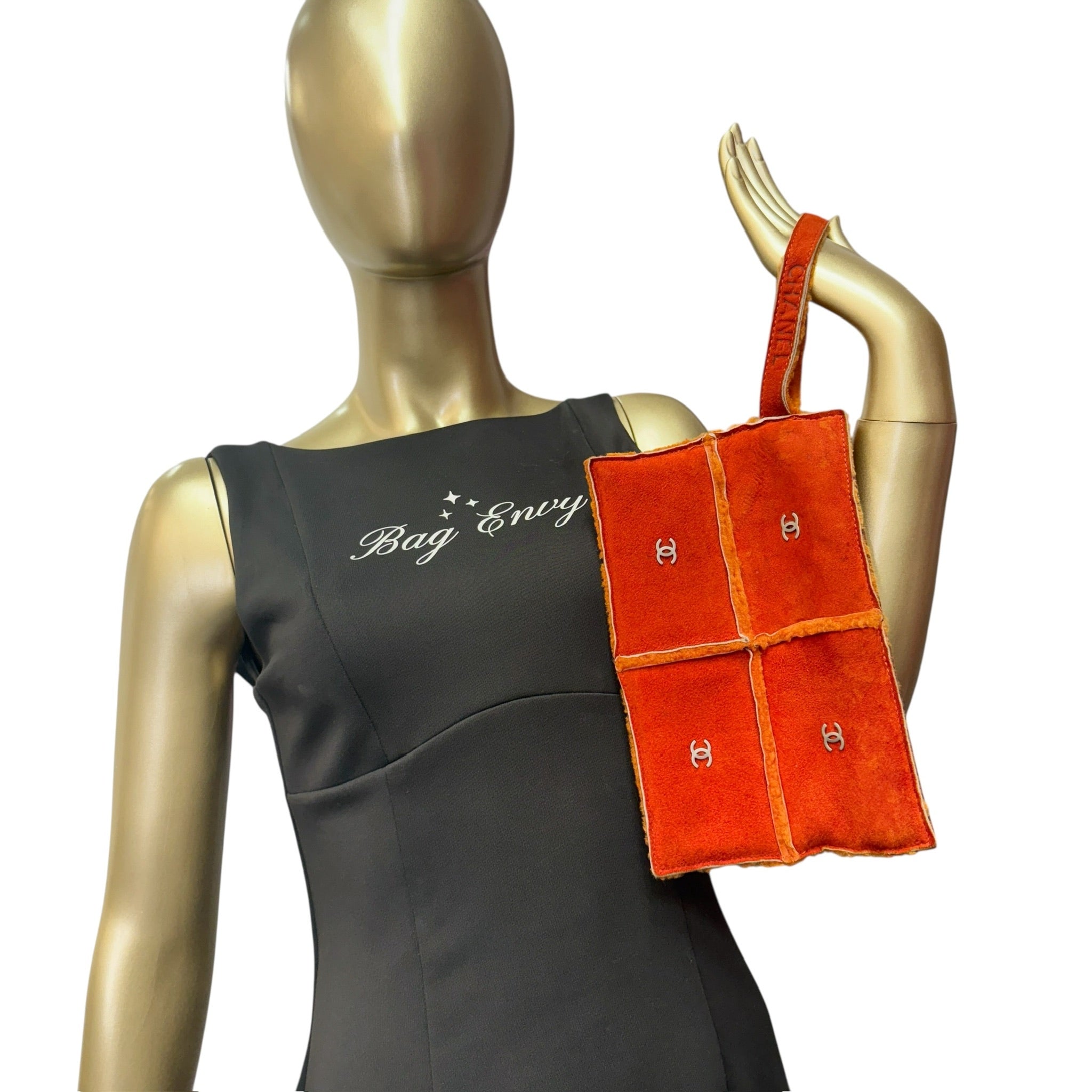 CHANEL Orange Shearling Suede Mouton Wristlet Bag