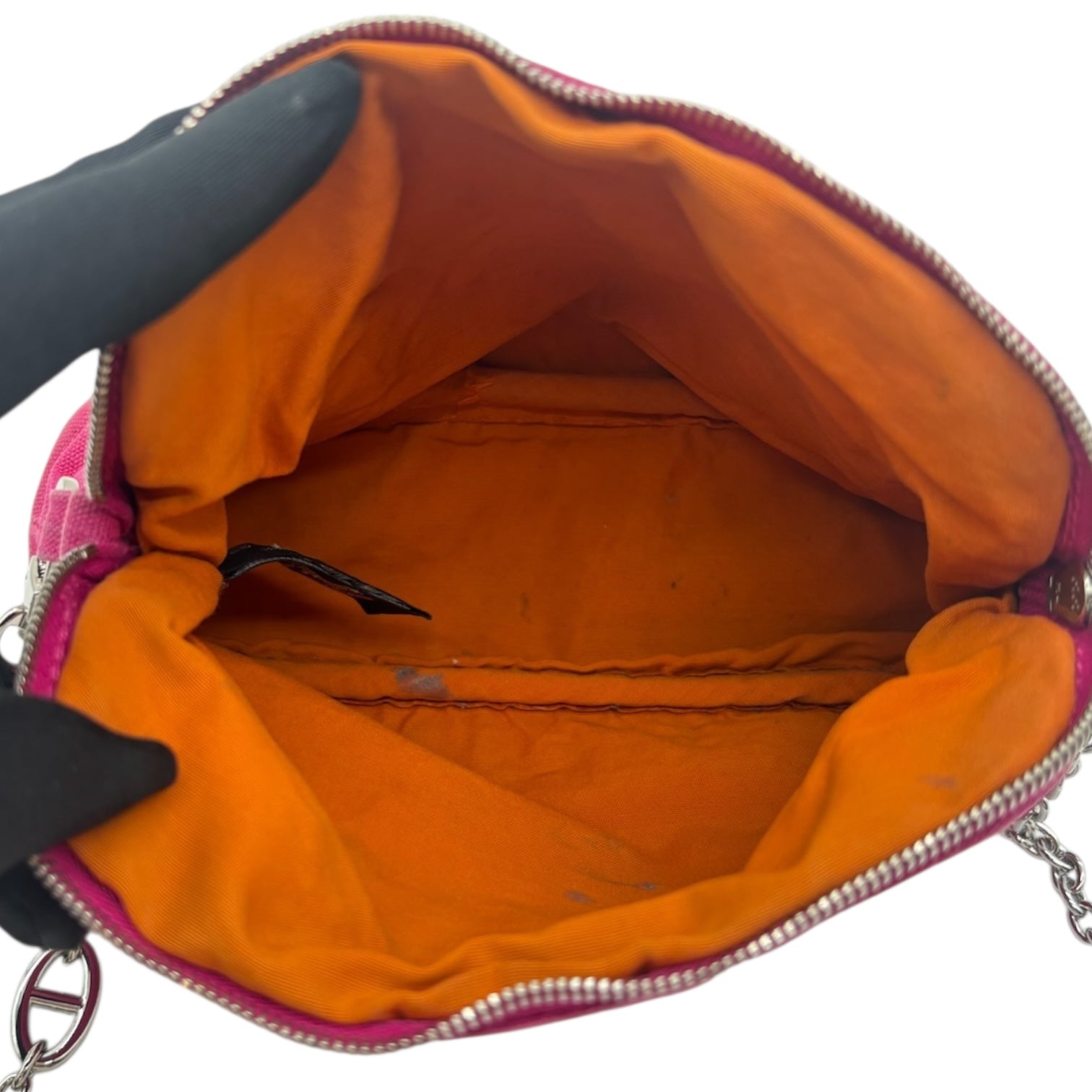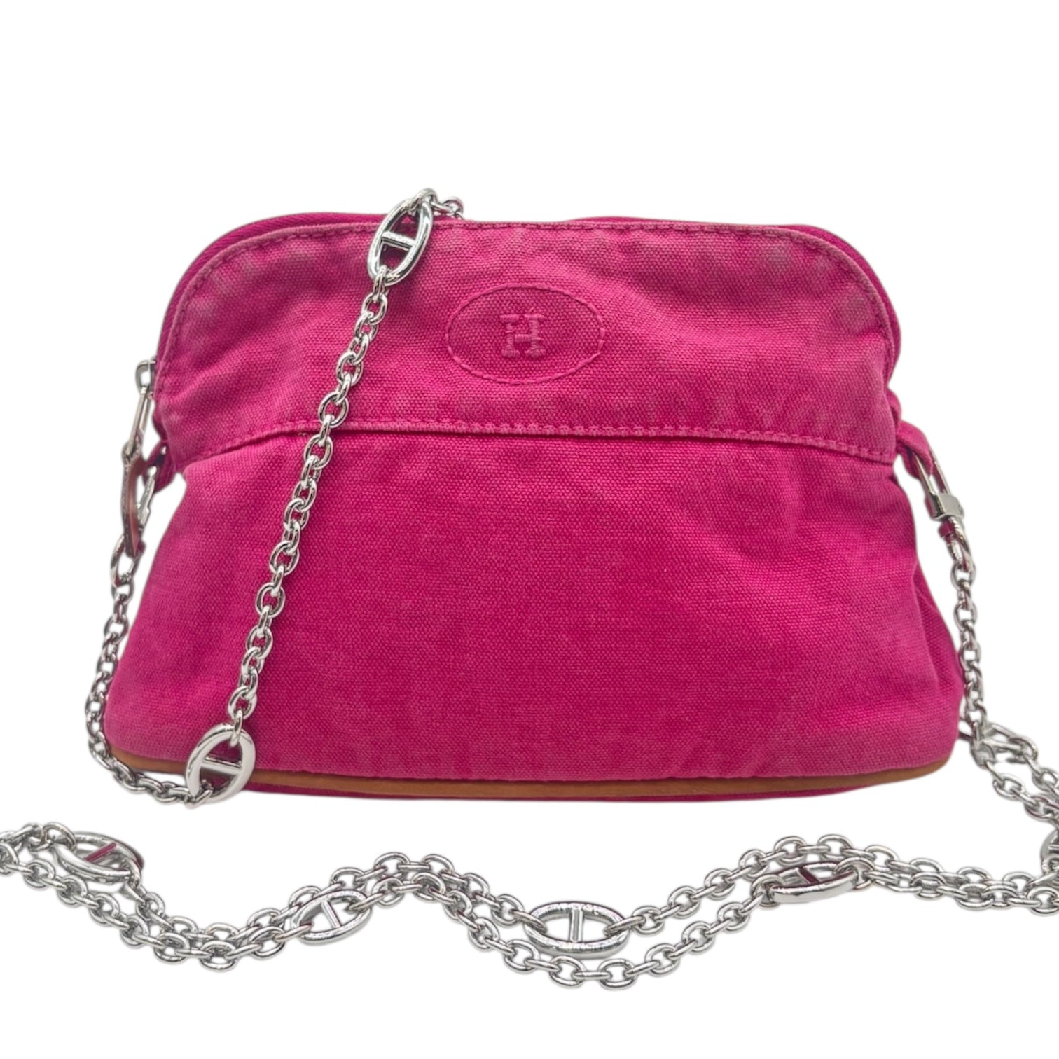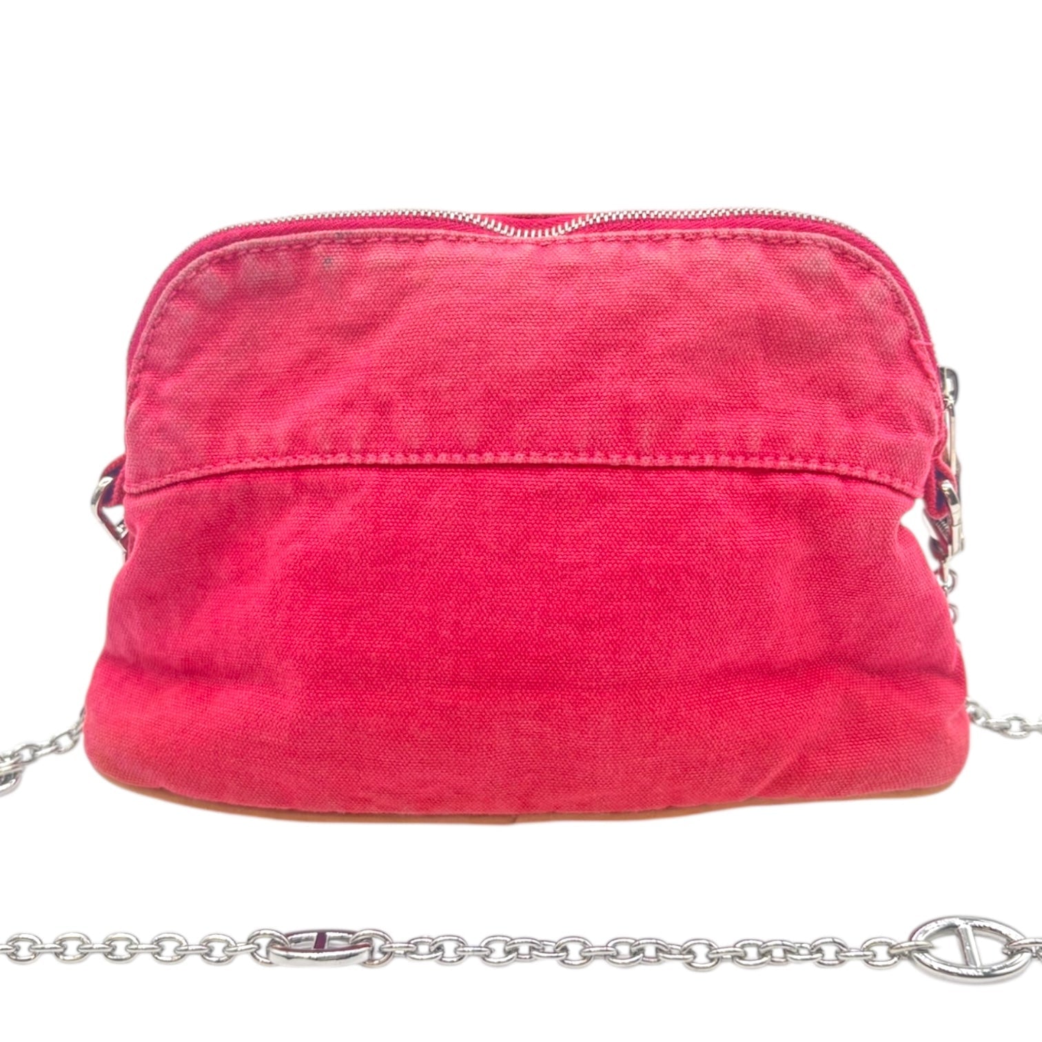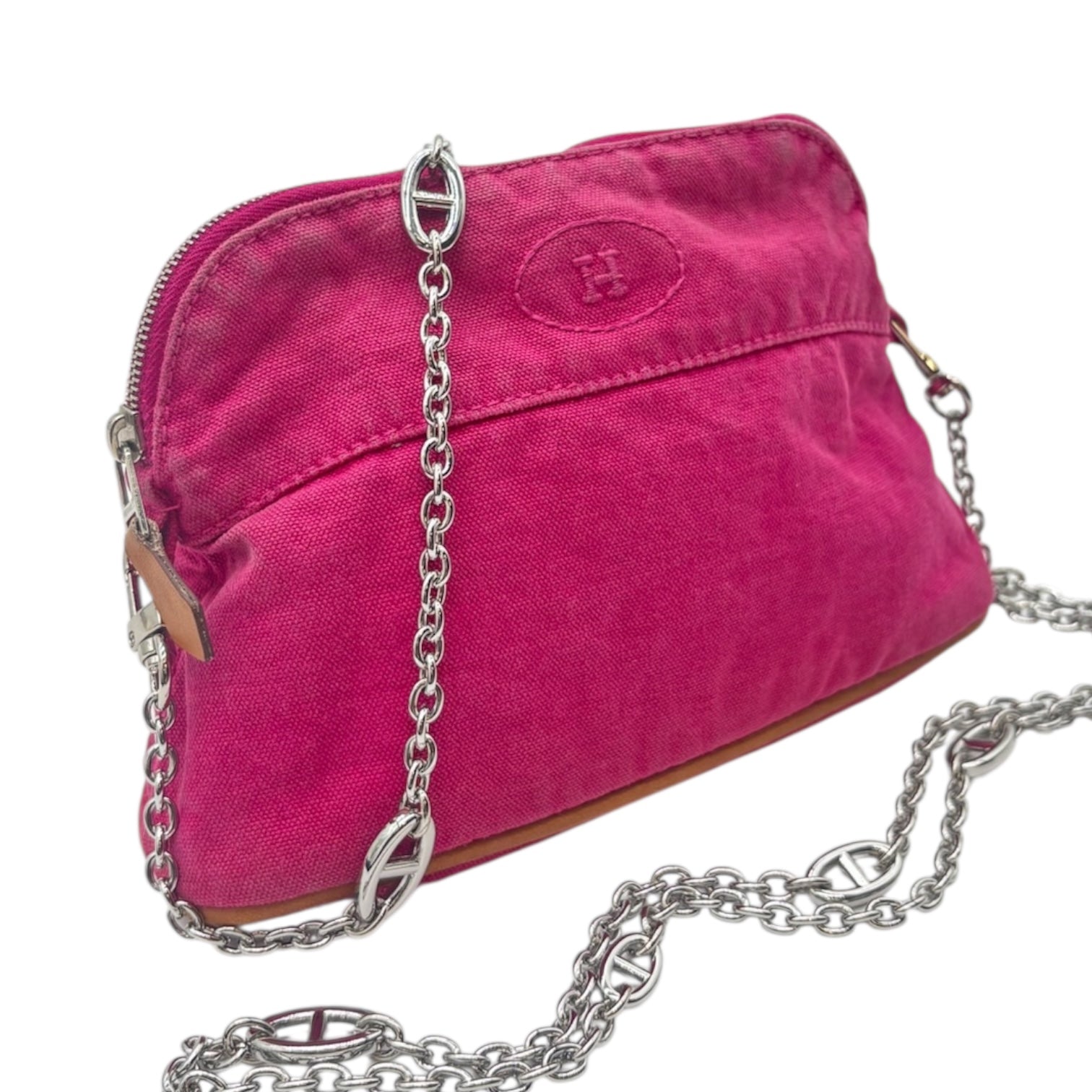 HERMES Pink Toile Bolide Trousse de Voyage PM Clutch with Chain
