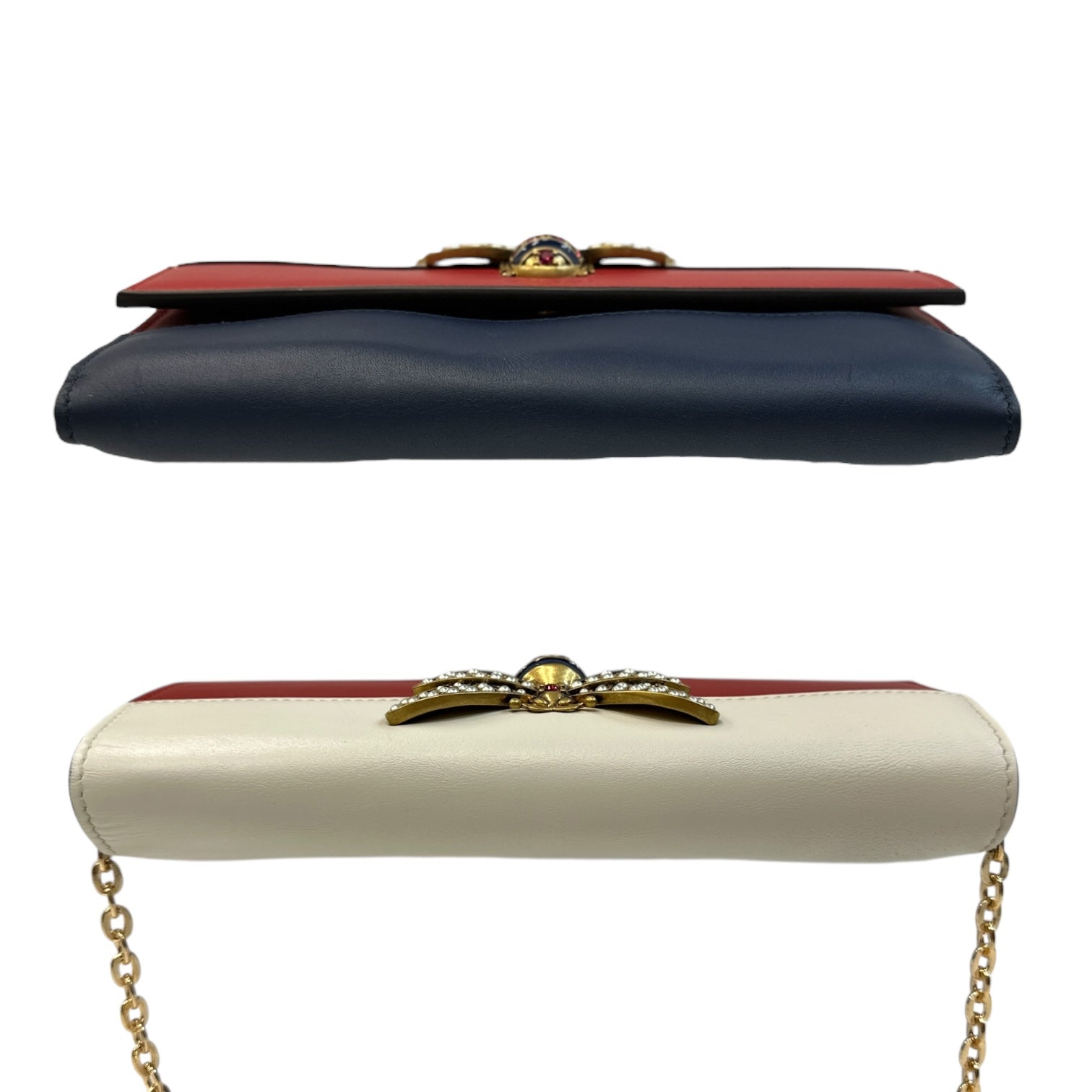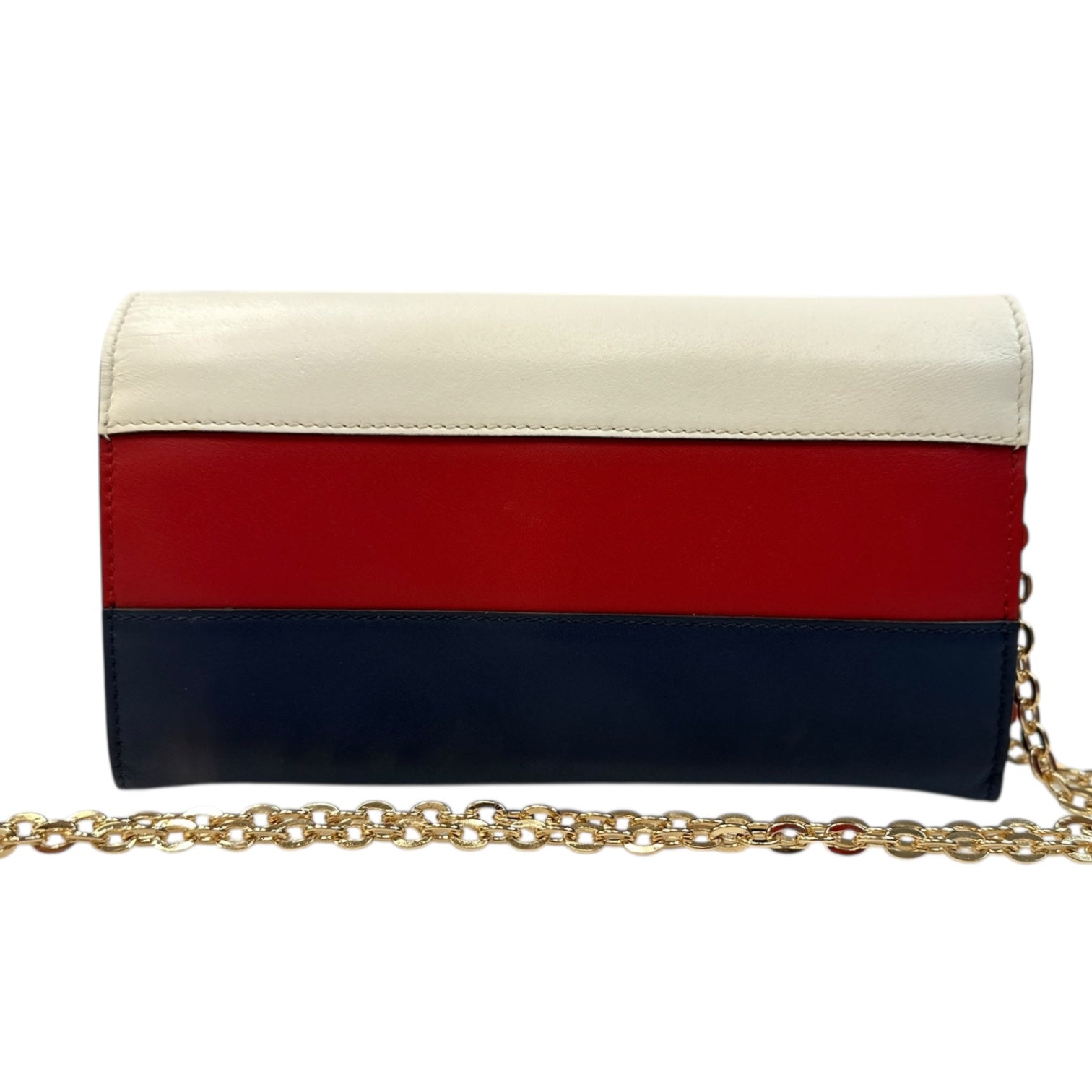 GUCCI Tri-Color Leather Queen Margaret Bee Wallet with Chain