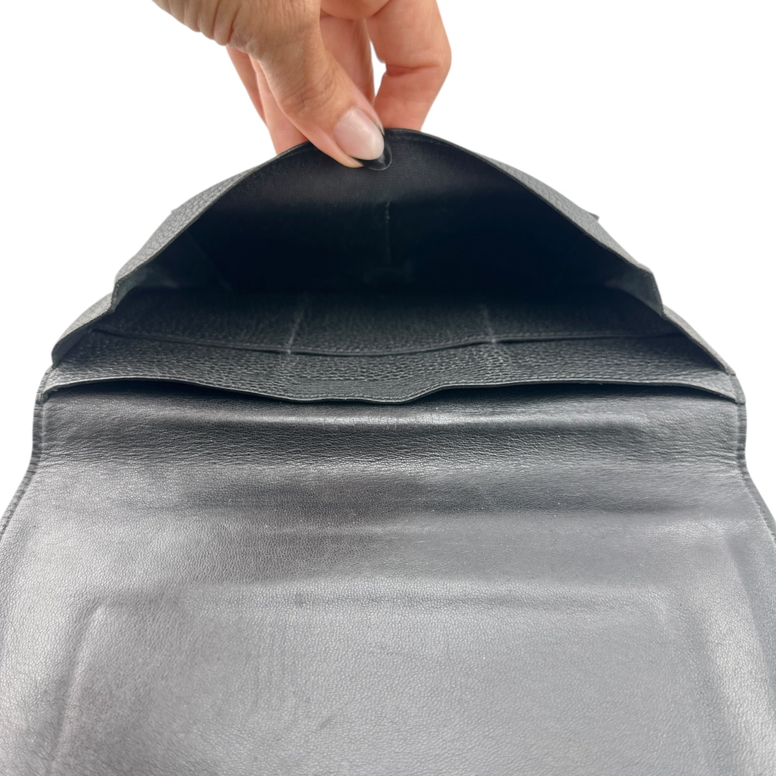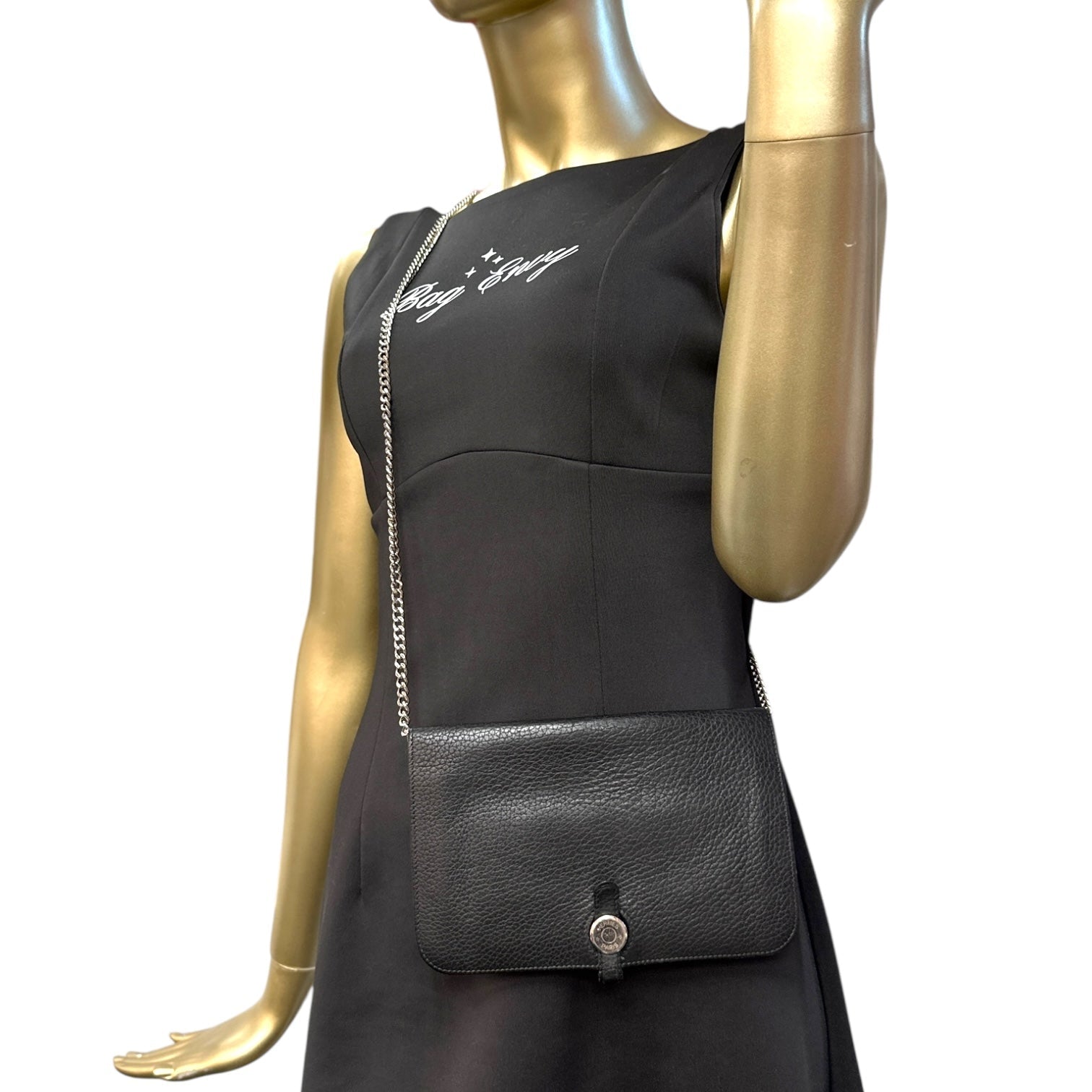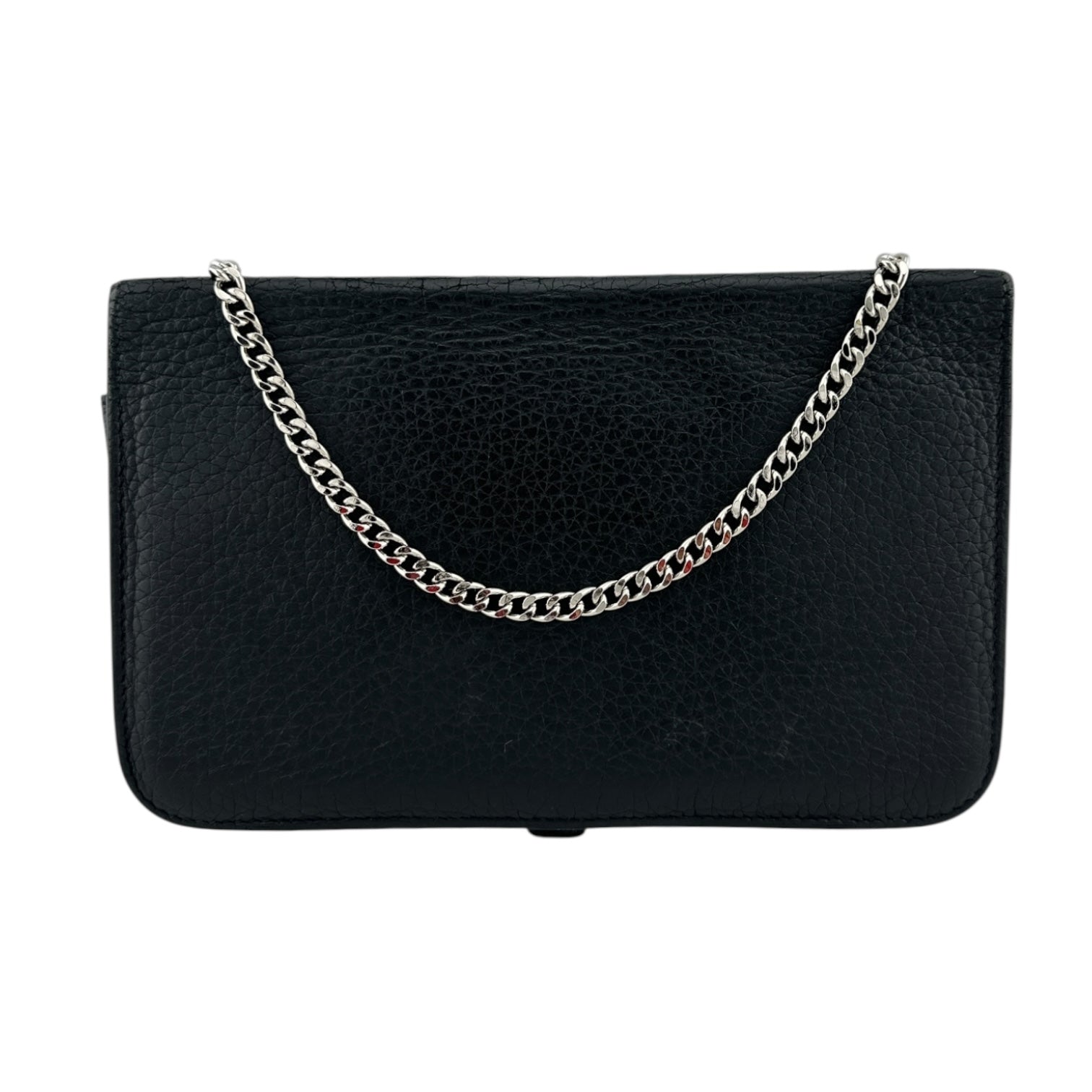 This pre-owned Hermes Blie Clemence Leather Dogon Wallet comes with an added unbranded crossbody chain, creating a versatile and stylish accessory.