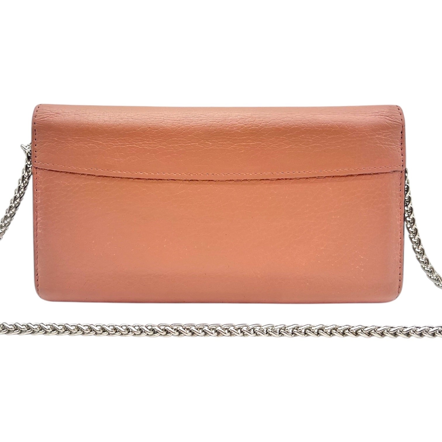 - Snap Closure to Gusseted Interior in Magenta Leather