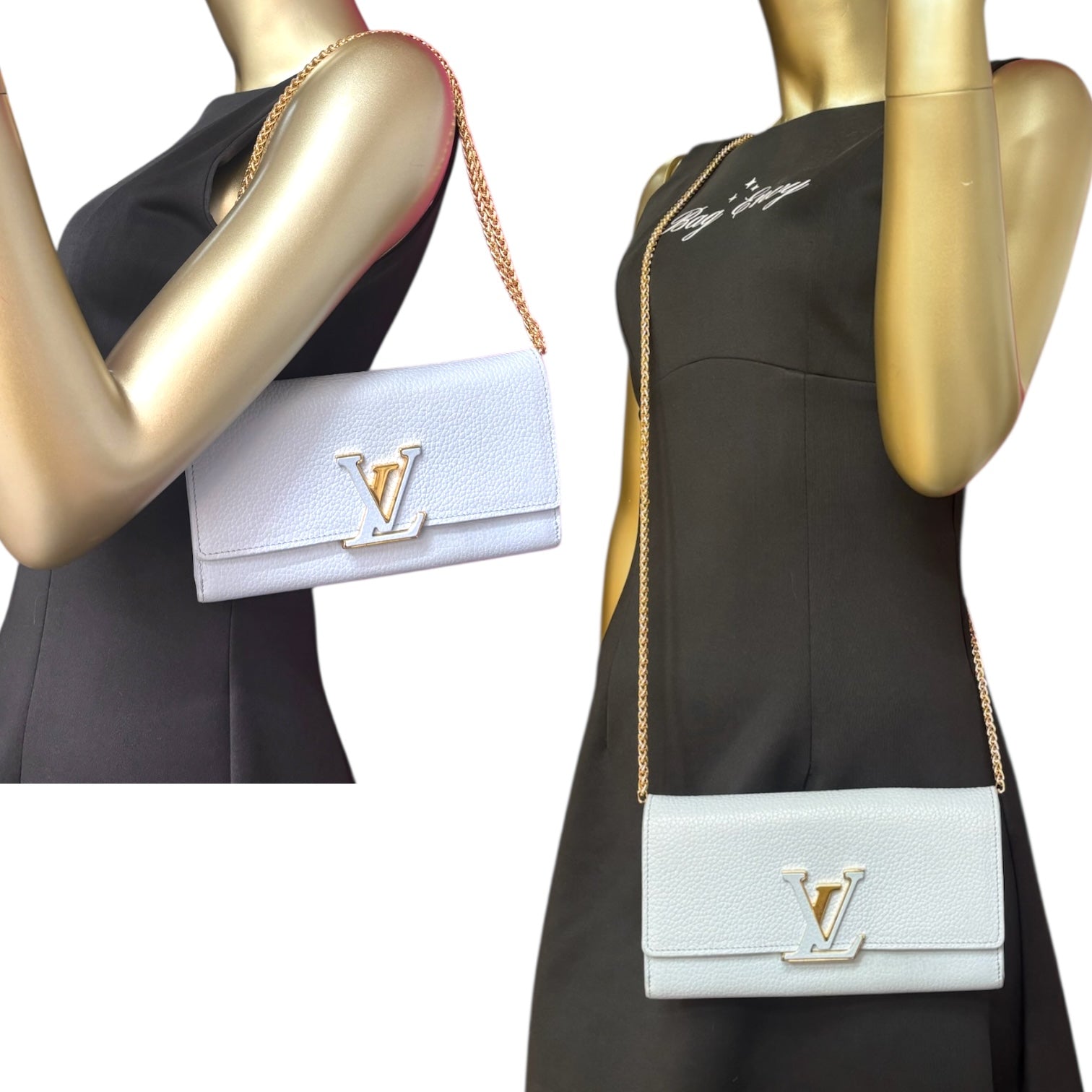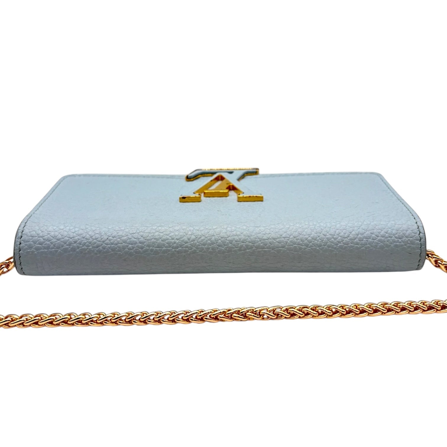 LOUIS VUITTON Blue Taurillon Capucines Leather Wallet added Chain