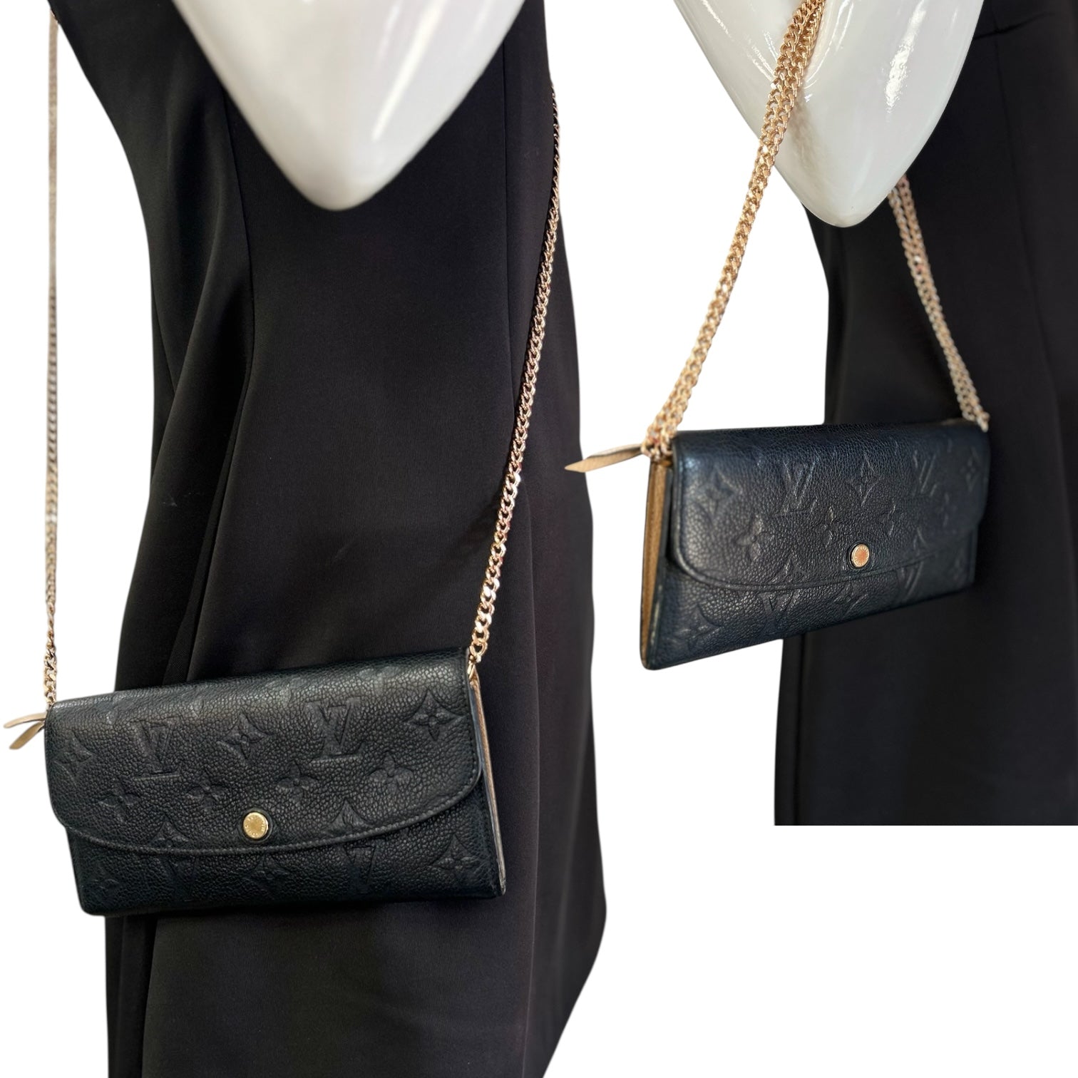LOUIS VUITTON Black Monogram Empreinte Emilie Wallet with added Chain
