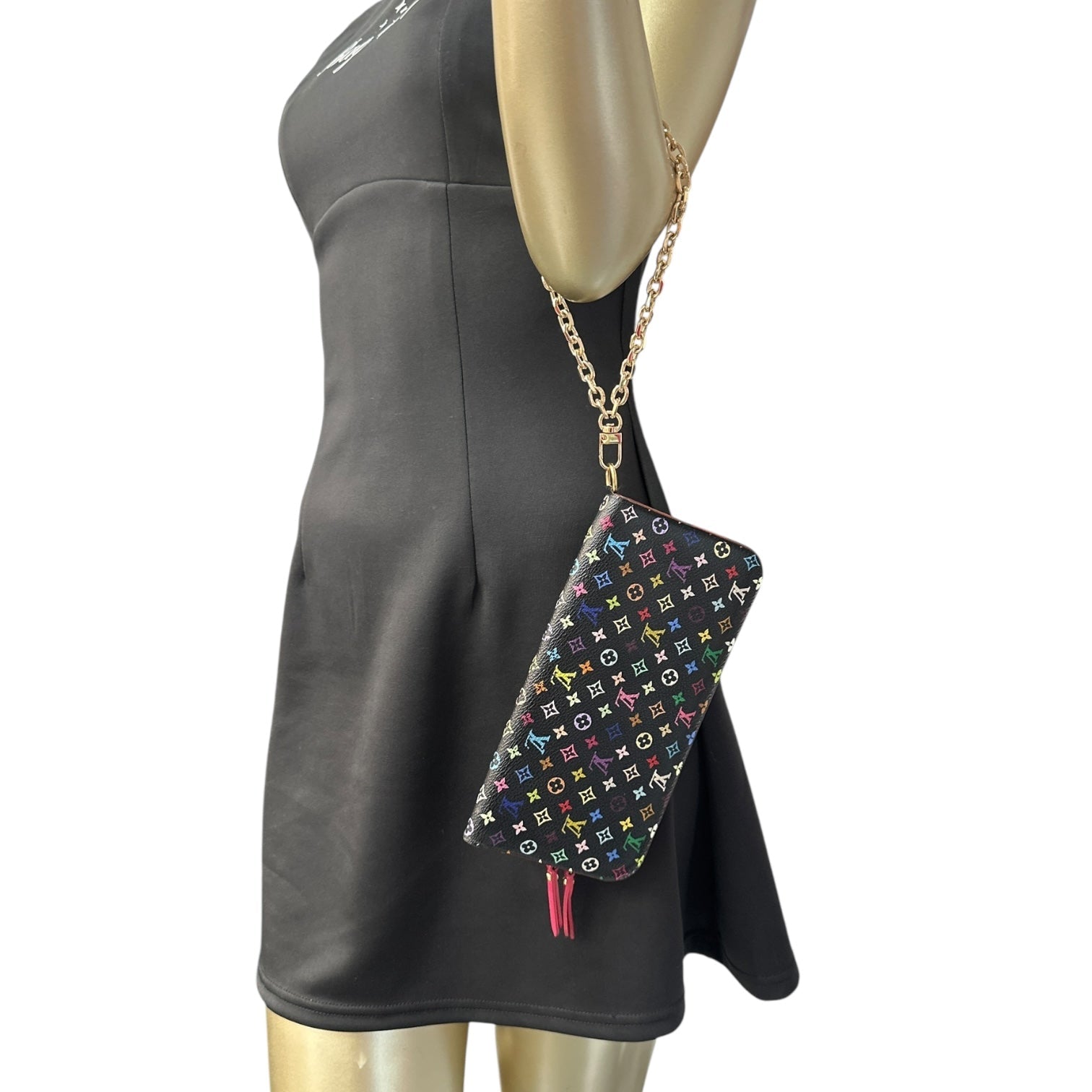 LOUIS VUITTON Black Multicolor Monogram Insolite Clutch with added Wrist Chain