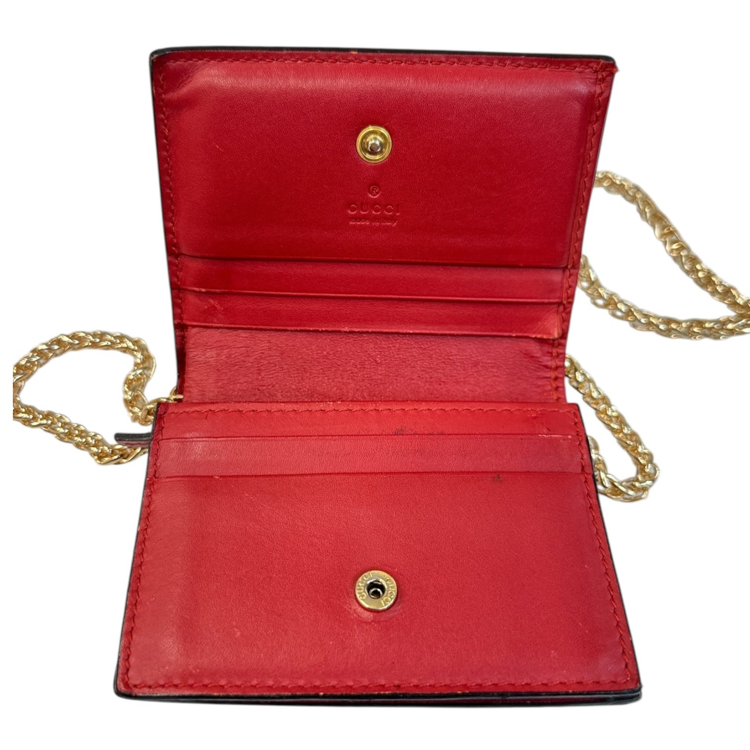 GUCCI GG Supreme Cherry Compact Wallet with Adjustable Chain