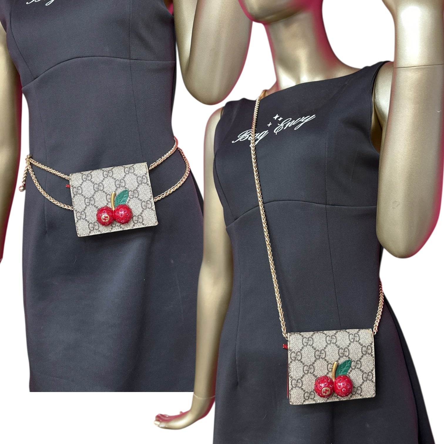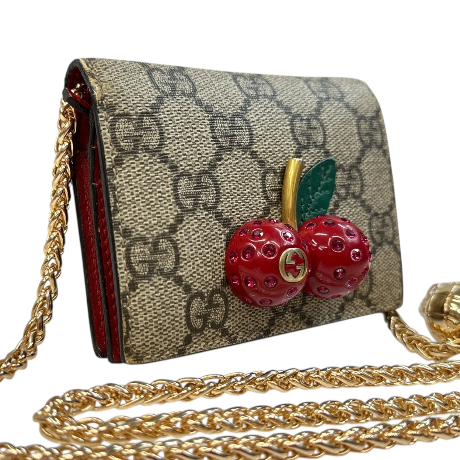 • Crystal Cherry Gold Interlocking GG Logo