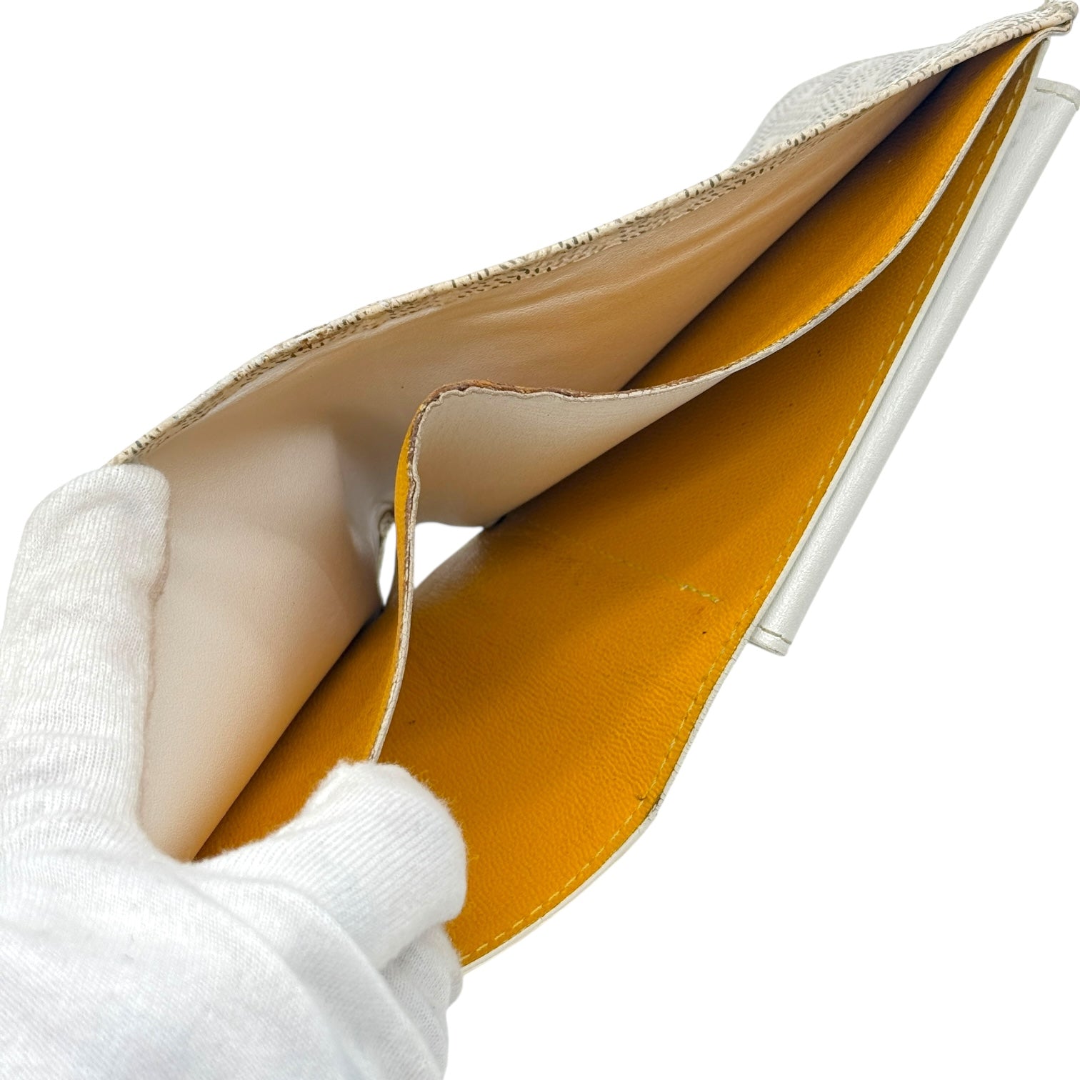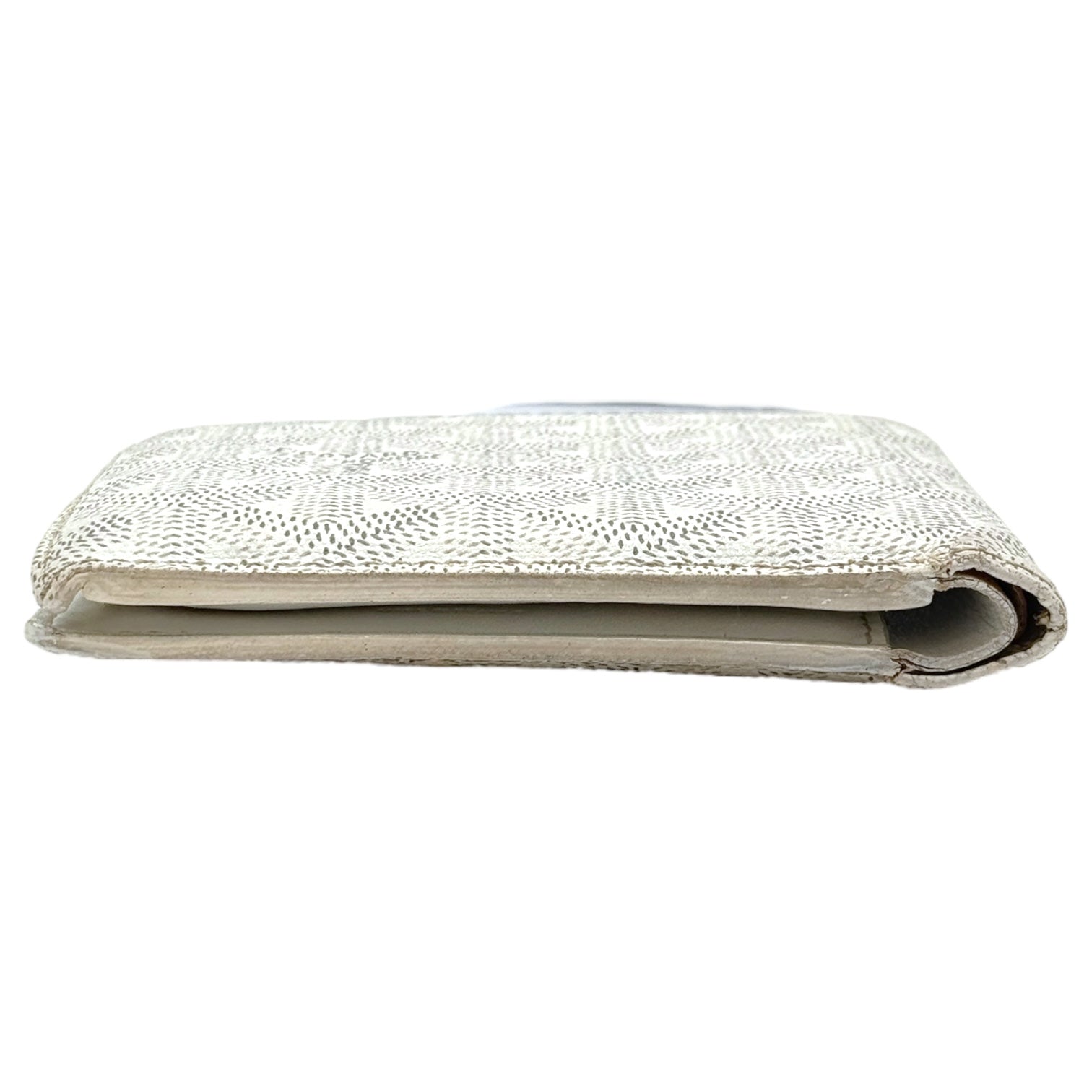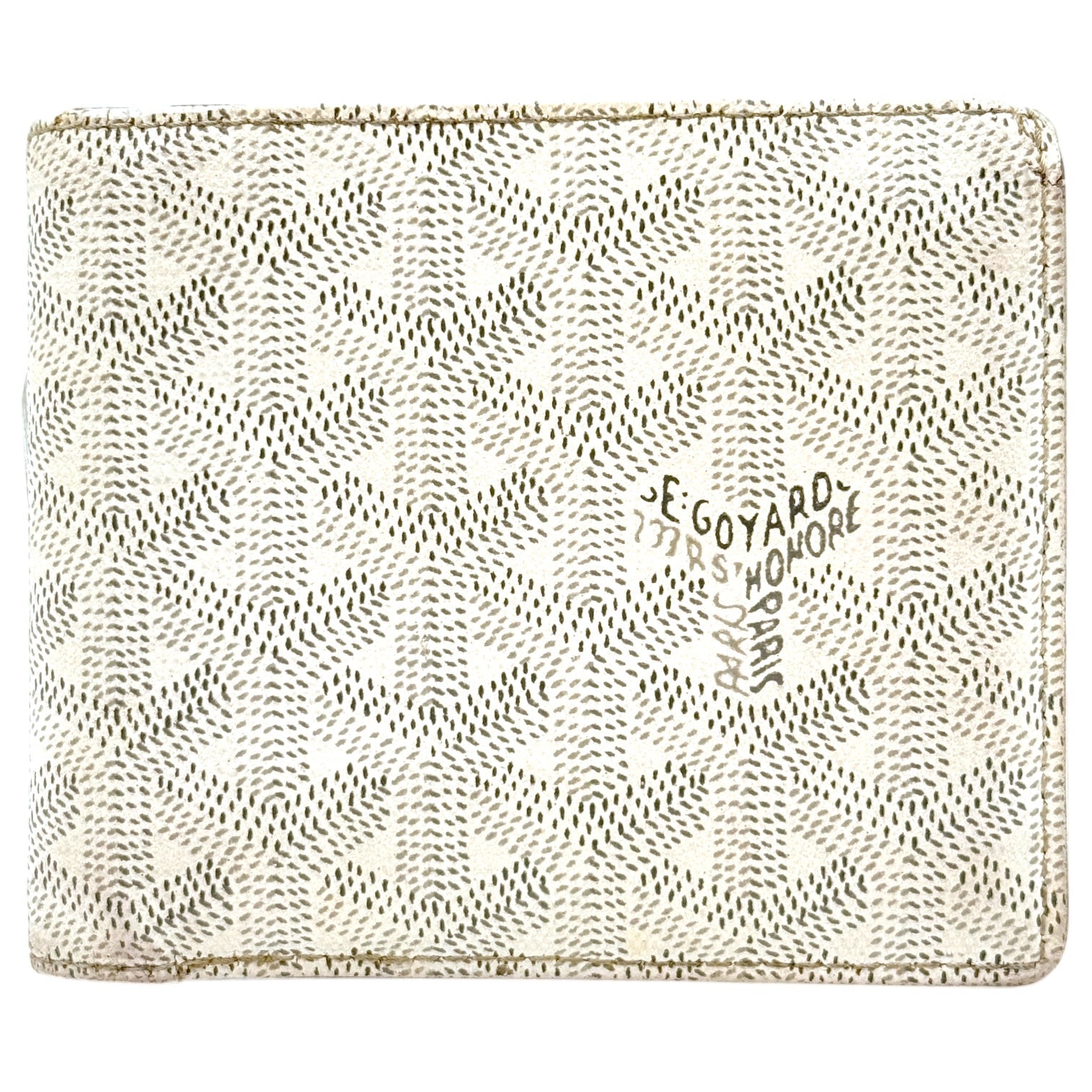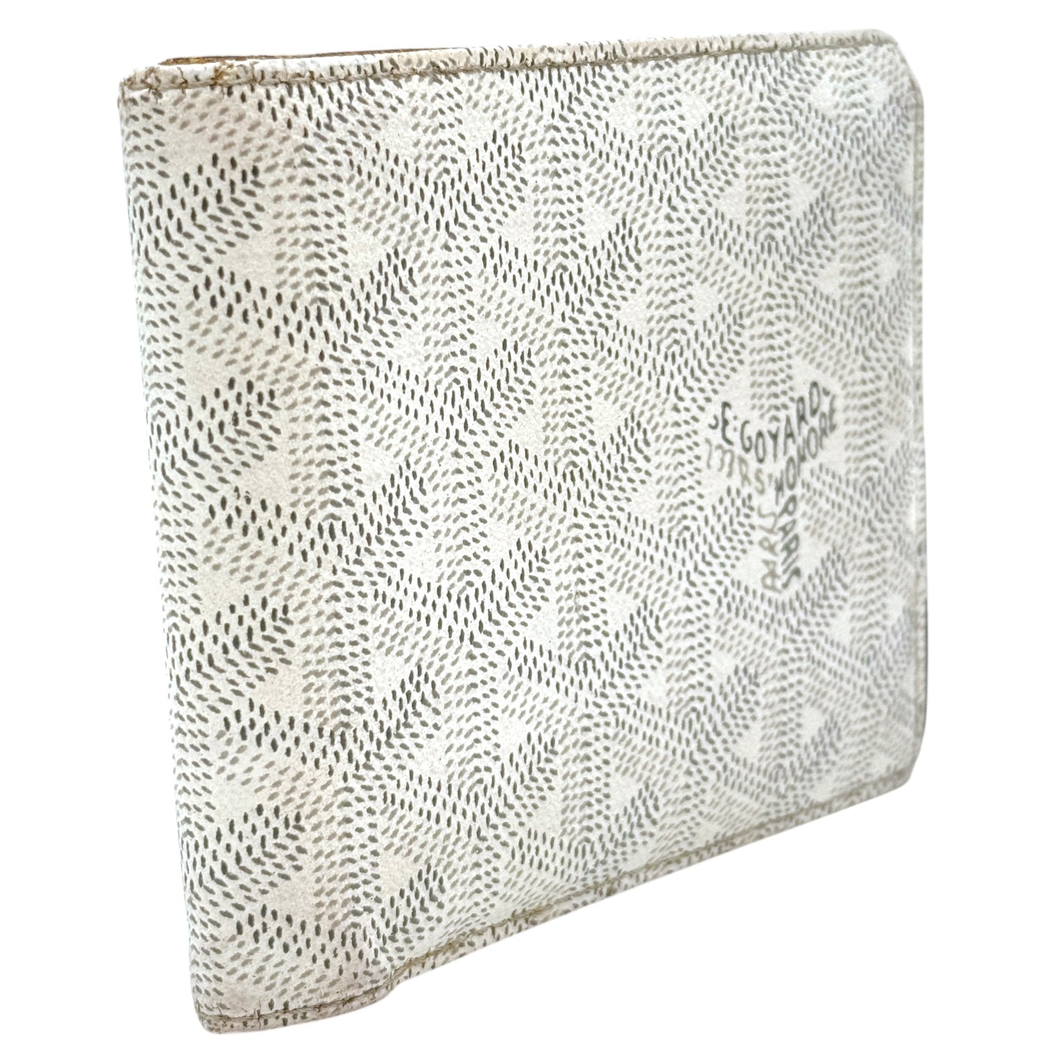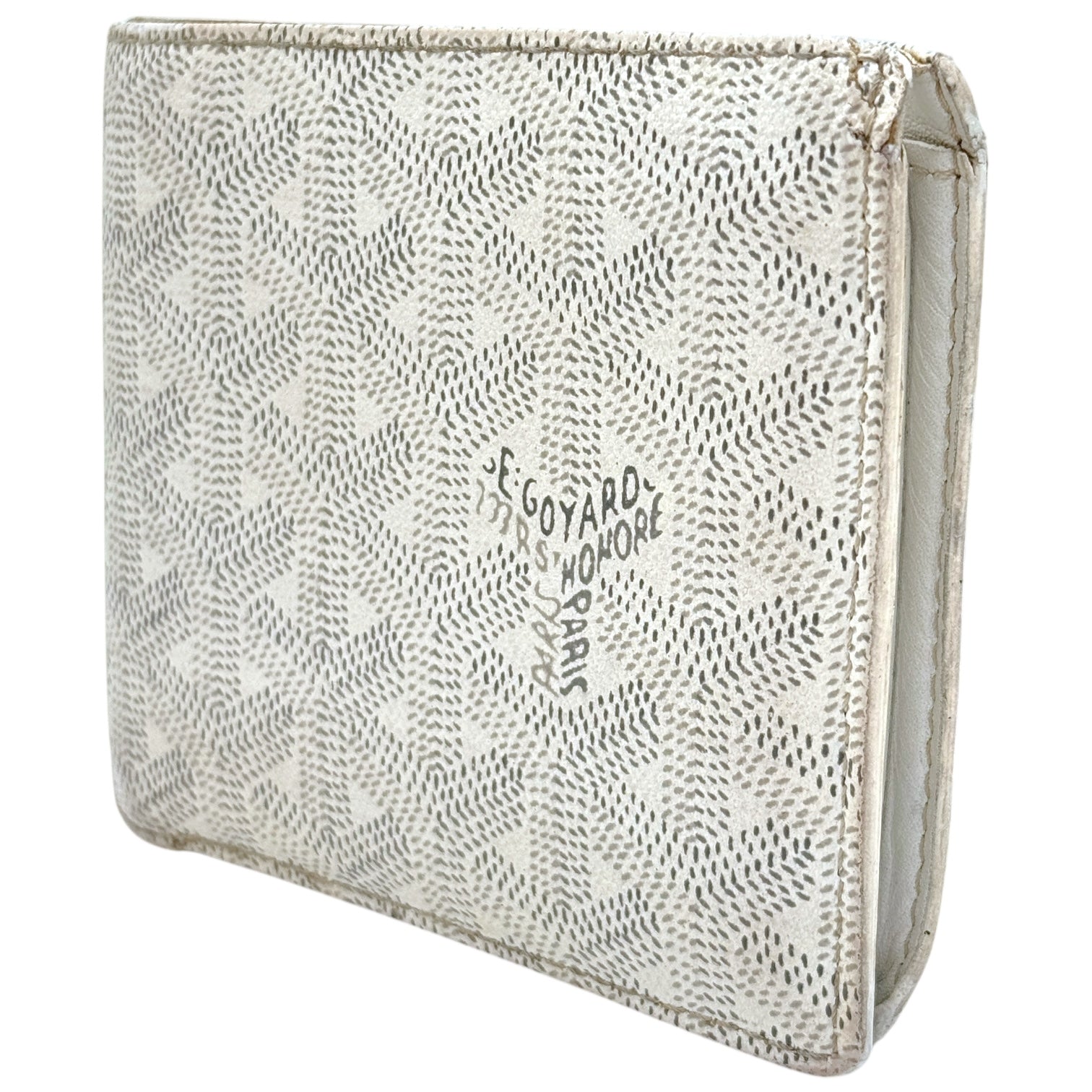 This Victoire bifold wallet from Goyard is rendered in crisp white Goyardine canvas. Sleek and compact, it houses essentials with style, featuring subtle branding and refined leather lining.