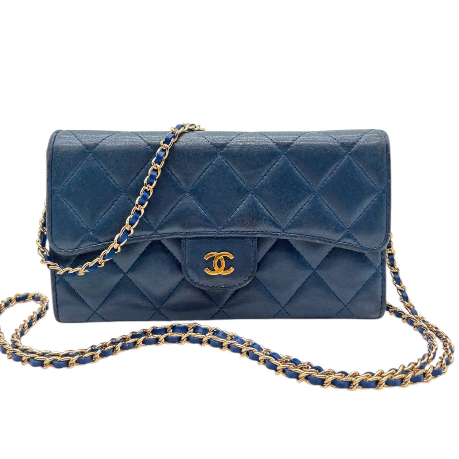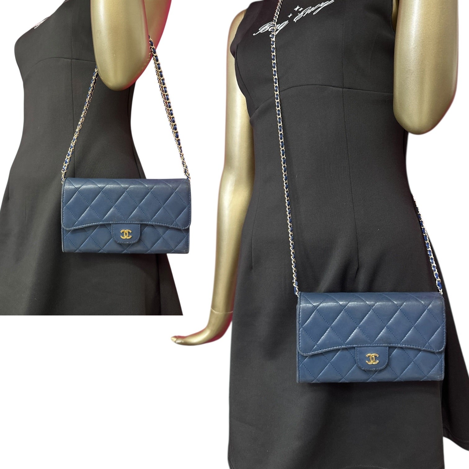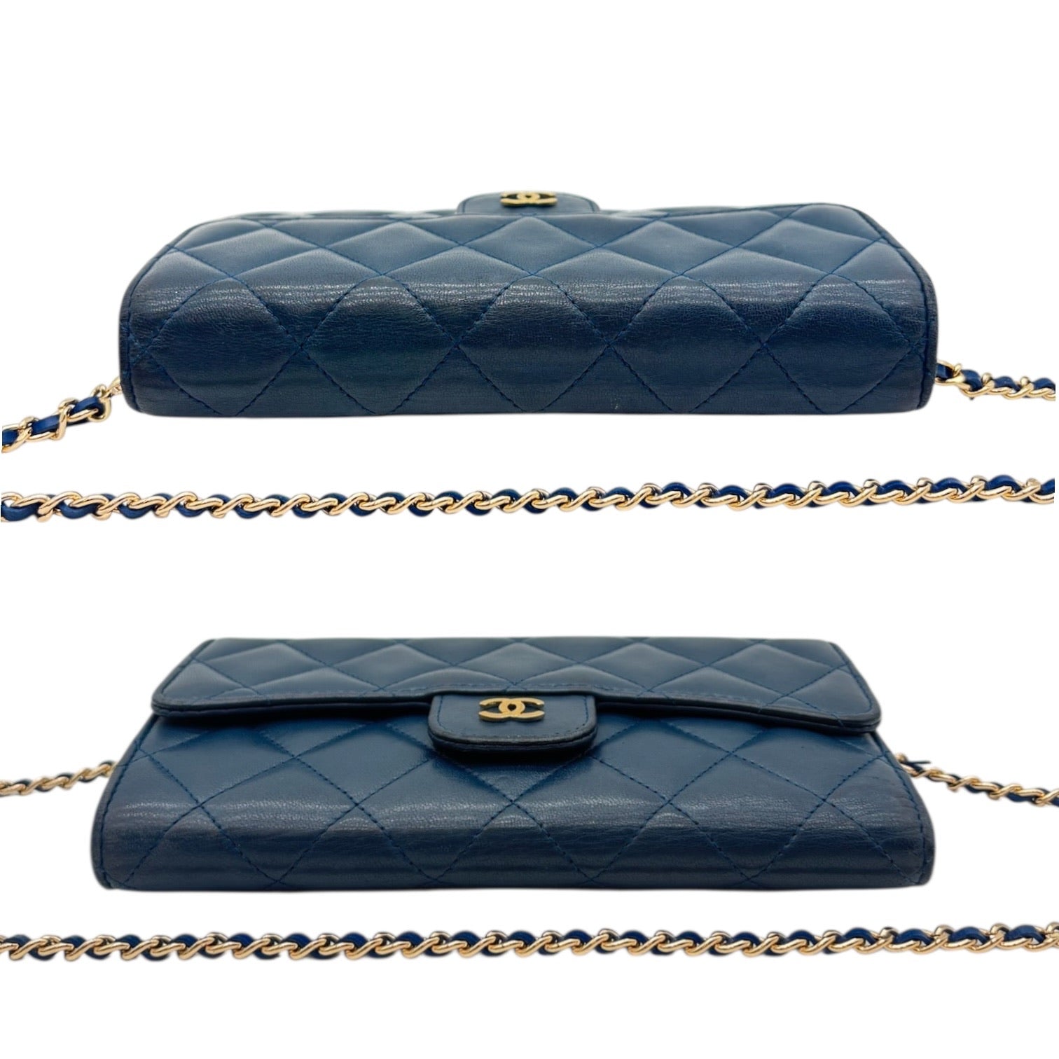 CHANEL Navy Lambskin GHW Classic Flap Wallet