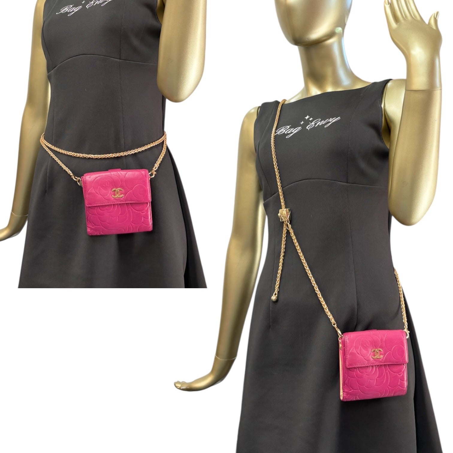 CHANEL Pink Lambskin Camellia Compact Wallet